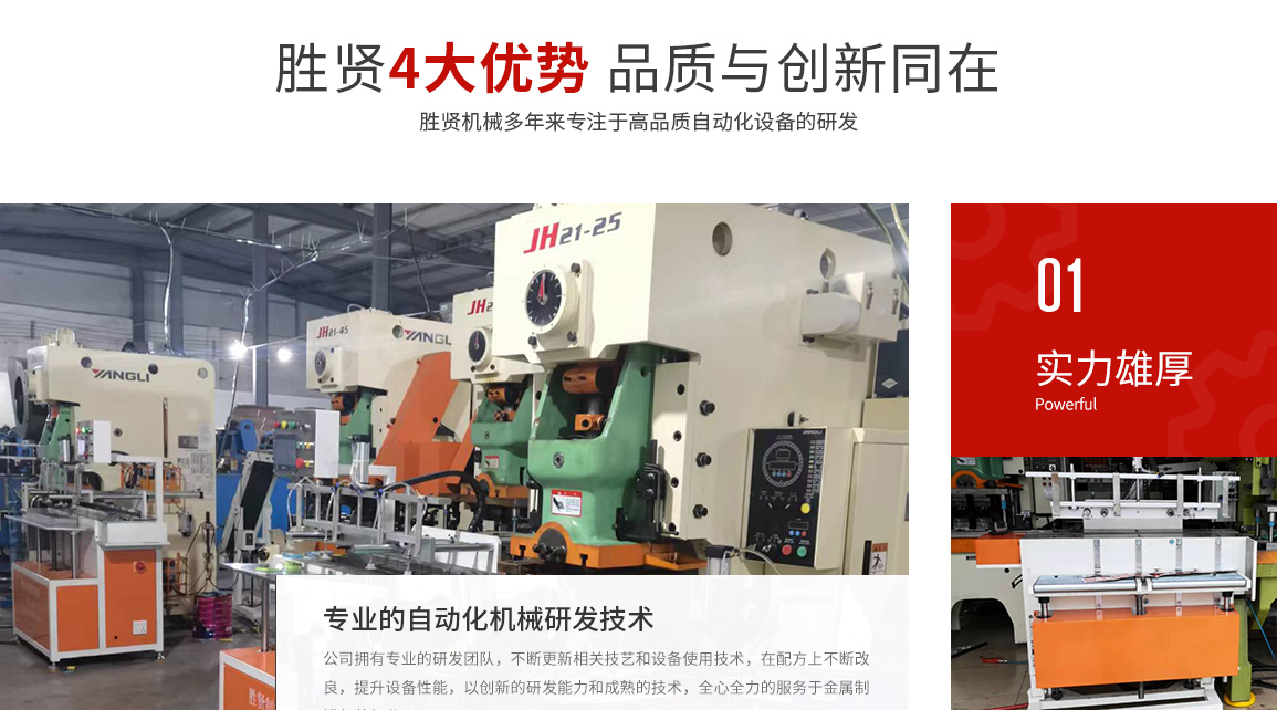 東莞市勝賢機械設備有限公司,是一家專業從事金屬制罐包裝行業的整套自動化設備和模具開發(fā)、制造與銷售的公司,擁有成熟的技術和創(chuàng)新開發(fā)能力。我們擁有有一批多年從事設計、研究開發(fā)的工程師,和設備、模具制作的技術人才。不斷推進制罐行業向高效、環(huán)保、節(jié)能、操作簡易化的方向發(fā)展。